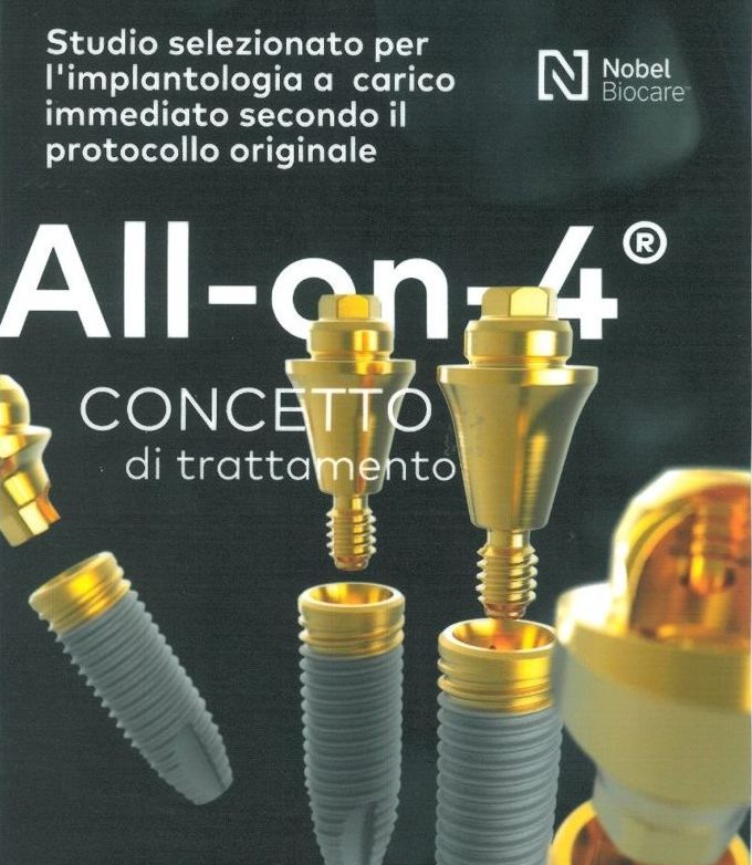 Lo studio è l'unico nella zona e certificato per il trattamento originale di riabilitazione con le tecniche All-on-Four e All-on-Six, sviluppate dalla prestigiosa ditta di impianti Nobel Biocare. Garantiamo soluzioni avanzate per il ripristino completo del sorriso, distinguendoci per eccellenza e innovazione nell'odontoiatria.